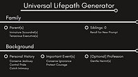 Almost missed the deadline, but without further ado, I present the web version of Universal Lifepath Generator. Unfortunately, I wasn't able to implement the Oracle part of the system, but I hope peop...